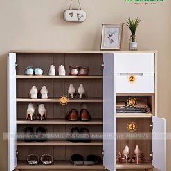 – Cánh mở hai bên, Tủ được chia làm 9 khoang để giầy. Sức chứa gấp đôi tủ giầy thông thường cùng kích thước.
