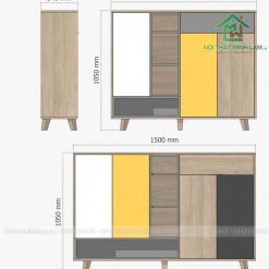– Khung ván tủ dày 15mm dầy dặn, chắc chắn, phủ melamine 2 mặt tạo lên tủ có độ cứng chắc chống ẩm mốc