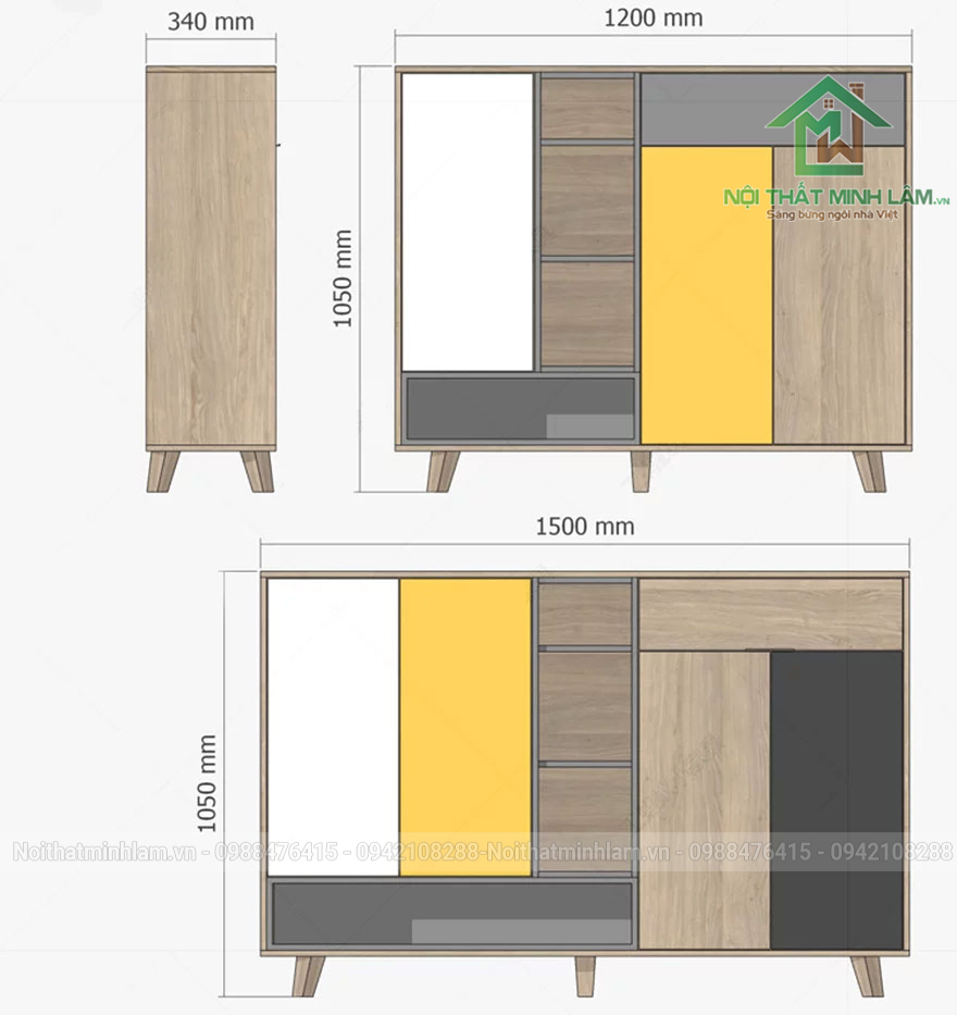 - Mẫu B: 1500 x 340 x 1050mm có giá bán: 3.500.000đ