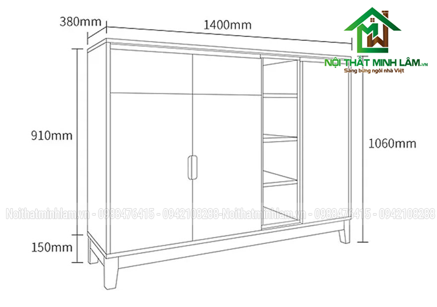 – Khung ván tủ dày 15mm dầy dặn, chắc chắn, phủ melamine 2 mặt tạo lên tủ có độ cứng chắc chống ẩm mốc