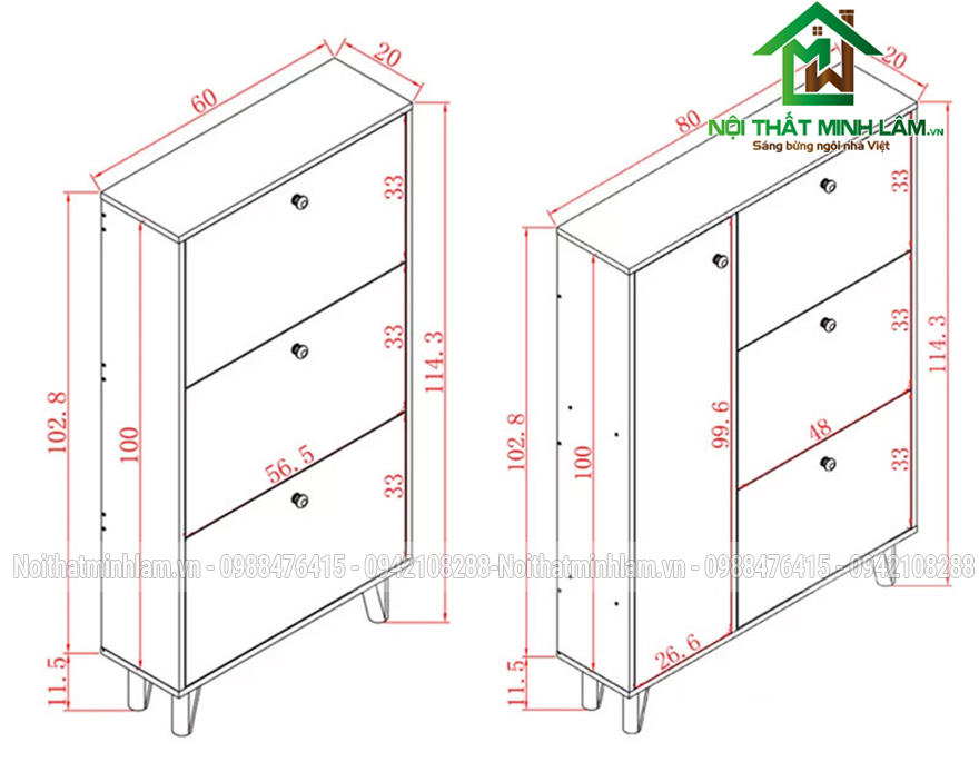 - Tủ lớn: 800 x 240 x 1143mm có giá bán là 2.600.000vnđ