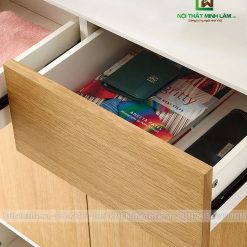 - Chất liệu: Gỗ MDF phủ Melamine chống ẩm, chống mối mọt vân gỗ, chân gỗ tự nhiên