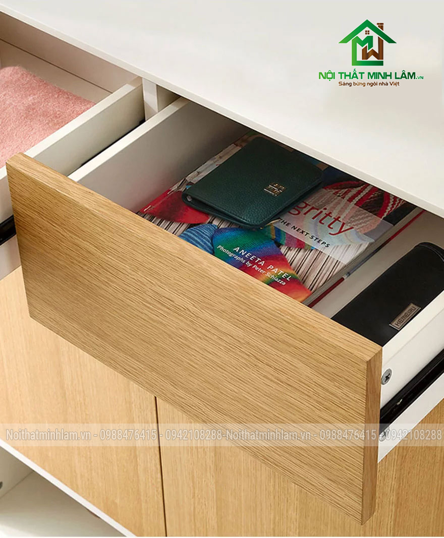 – Khung ván tủ dày 15mm dầy dặn, chắc chắn, phủ melamine 2 mặt tạo lên tủ có độ cứng chắc chống ẩm mốc