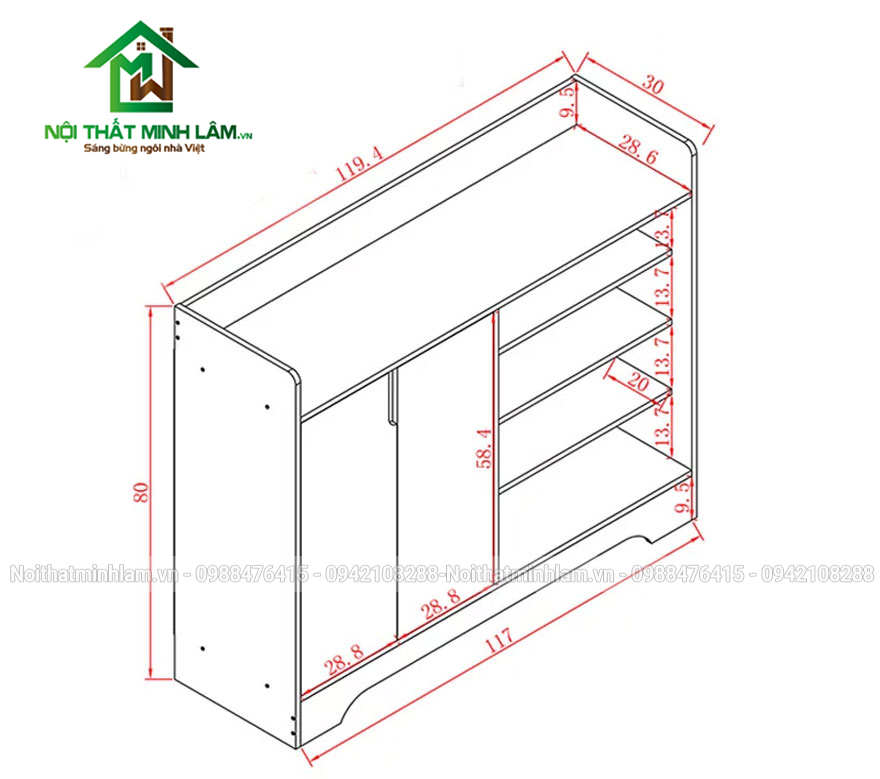 THÔNG TIN CHI TIẾT VỀ TỦ GIẦY GỖ CÔNG NGHIỆP TG500A