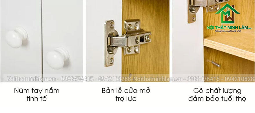 - Phụ kiện: Bản lề giảm chấn, Ray bi bản lề chính hãng