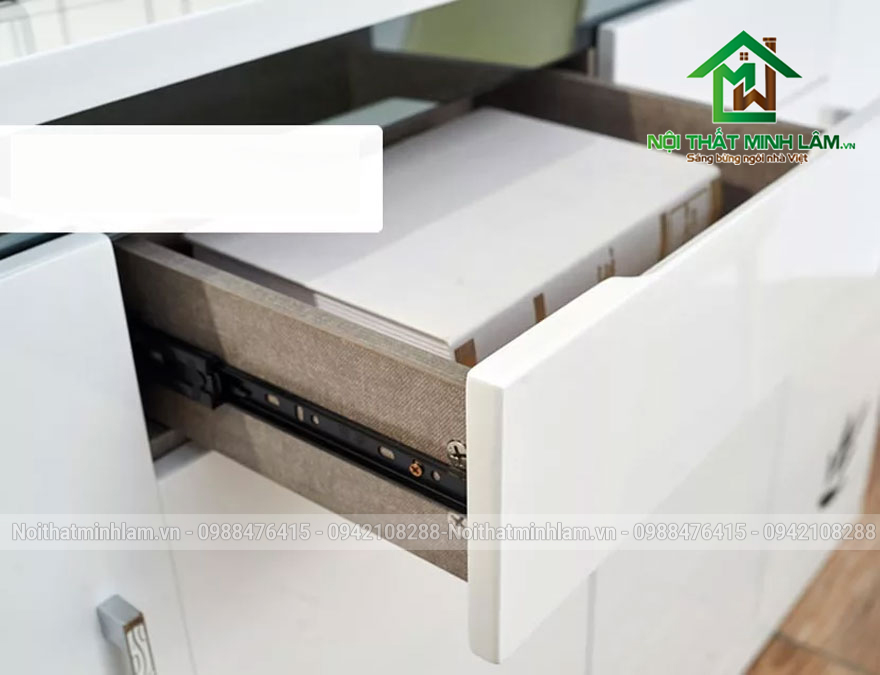 - Phụ kiện: Bản lề giảm chấn, Ray bi bản lề chính hãng