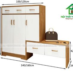 Tủ giày gỗ công nghiệp kết hợp ghế ngồi đẹp hiện đại TG400A gây ấn tượng với khách hàng nhờ phong cách thiết kế kiểu tủ hình chữ L độc đáo, có cả chỗ để bạn ngồi đi giày dép. Tủ được chia làm kệ chứa, và ngăn kéo tủ với các kích thước khác nhau, phân chia khoa học giúp người dùng dễ dàng sử dụng phù hợp với rất nhiều không gian phòng khách, căn hộ chung cư…