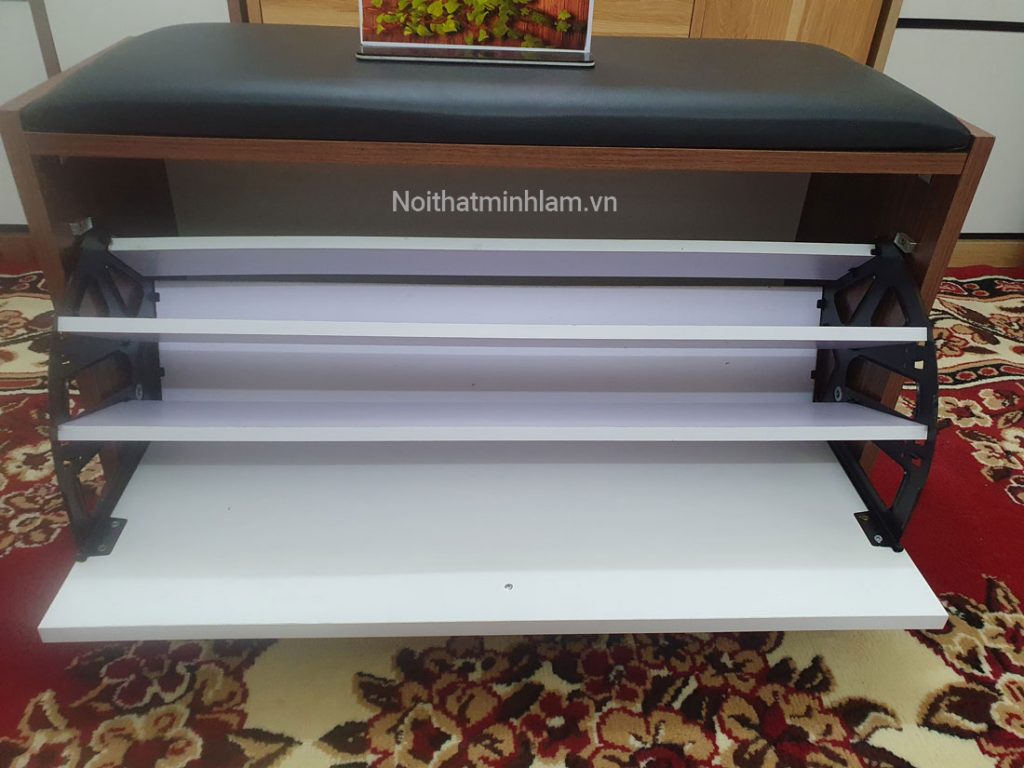 – Cánh mở lật thông minh, mỗi cánh chia làm 3 khoang để giày. Sức chứa gấp đôi tủ giầy thông thường cùng kích thước.