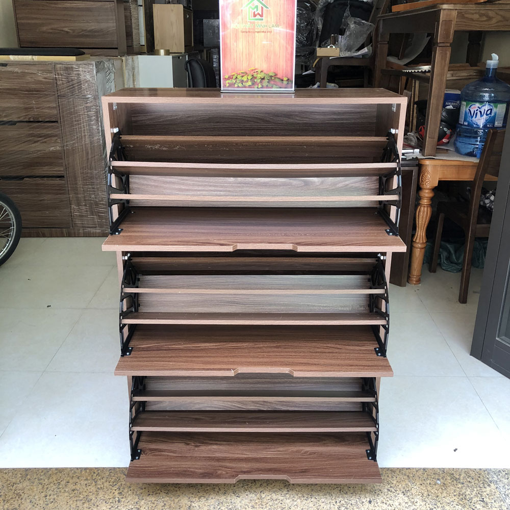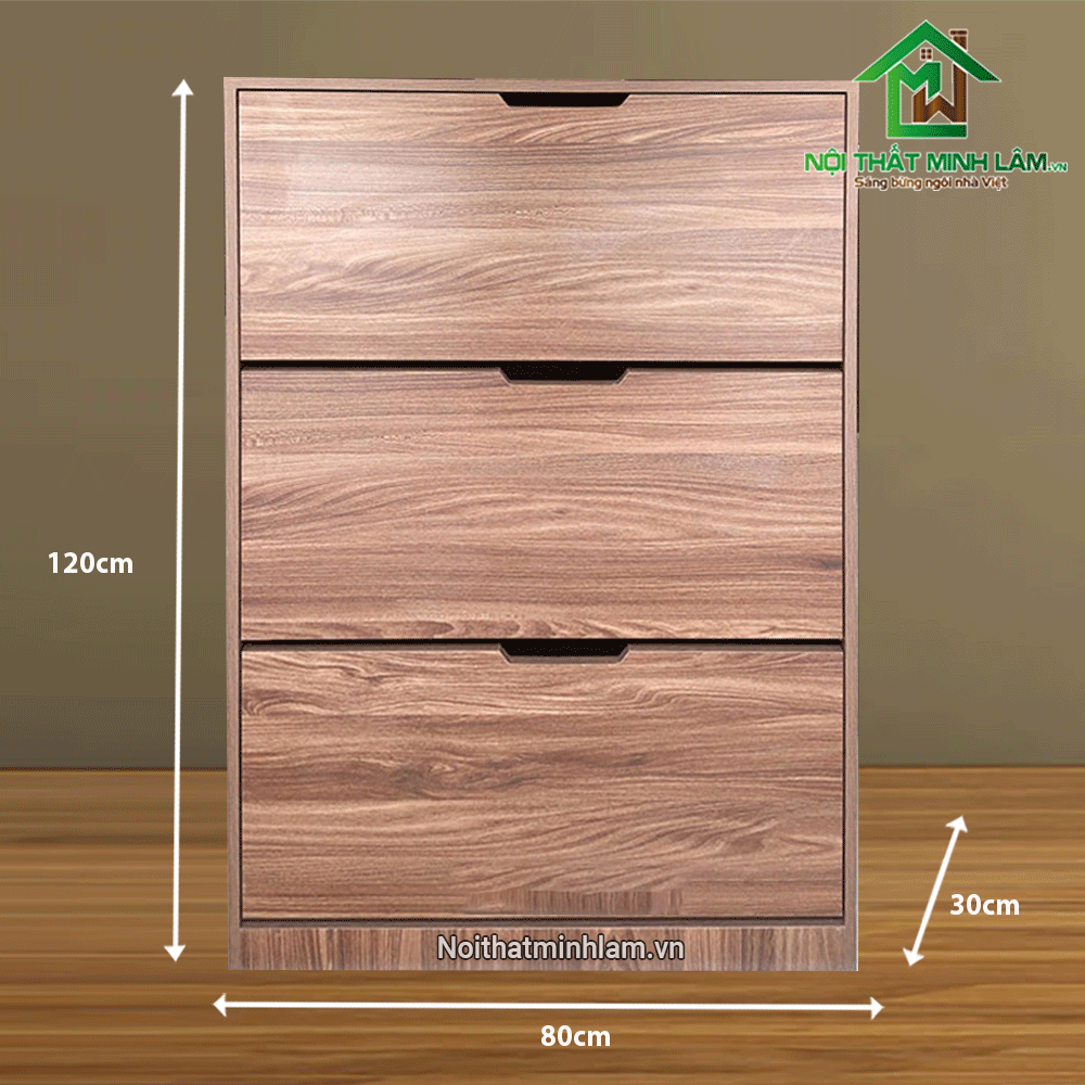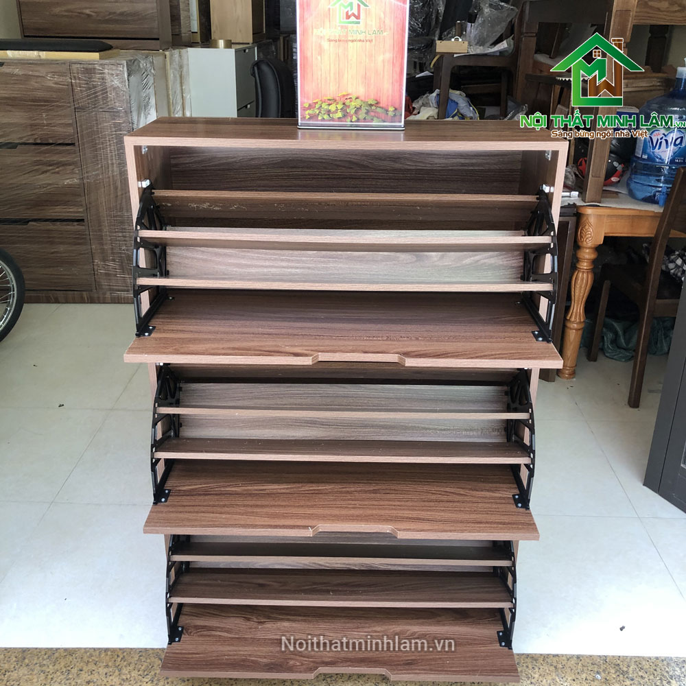 – Cánh mở lật thông minh, mỗi cánh chia làm 3 khoang để giày. Sức chứa gấp đôi tủ giầy thông thường cùng kích thước.