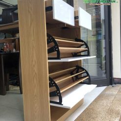 – Cánh mở lật thông minh, mỗi cánh chia làm 3 khoang để giày. Sức chứa gấp đôi tủ giầy thông thường cùng kích thước.