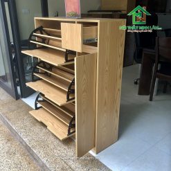 – Cánh mở lật thông minh, mỗi cánh chia làm 3 khoang để giày. Sức chứa gấp đôi tủ giầy thông thường cùng kích thước.