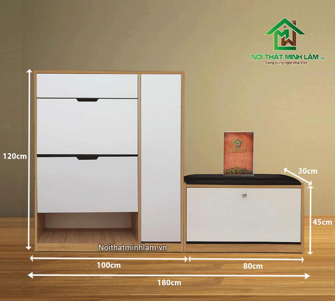 – Sức chứa: 46 – 50 đôi giầy dép, 12 ngăn chứa, 1 ngăn kéo, 1 cánh mở