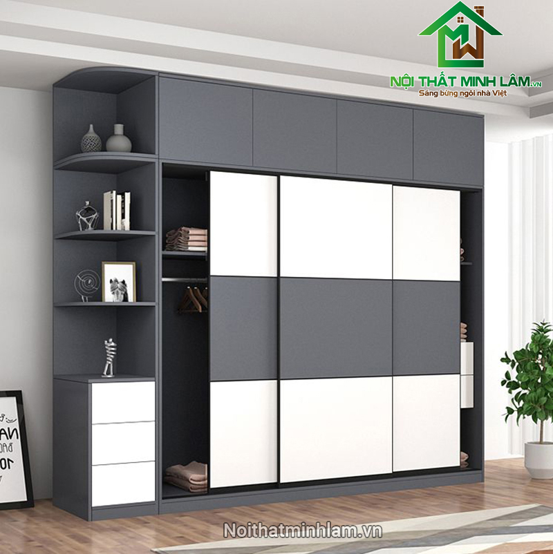 - Về thiết kế, kiểu dáng, mẫu mã: Thiết kế mẫu mã hiện đại, đa năng, vừa là tủ đựng quần áo gia đình vừa là tủ trang trí, tạo điểm nhấn cho không gian, đảm bảo nhu cầu chứa đồ dùng như quần áo, chăn ga cho gia đình bạn.