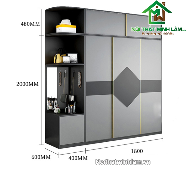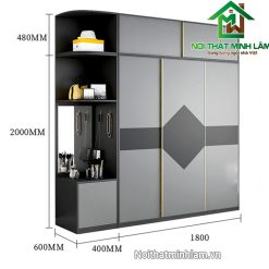 - Tủ 3 cánh kèm giá để đồ: 1642 x 550 x 2400mm