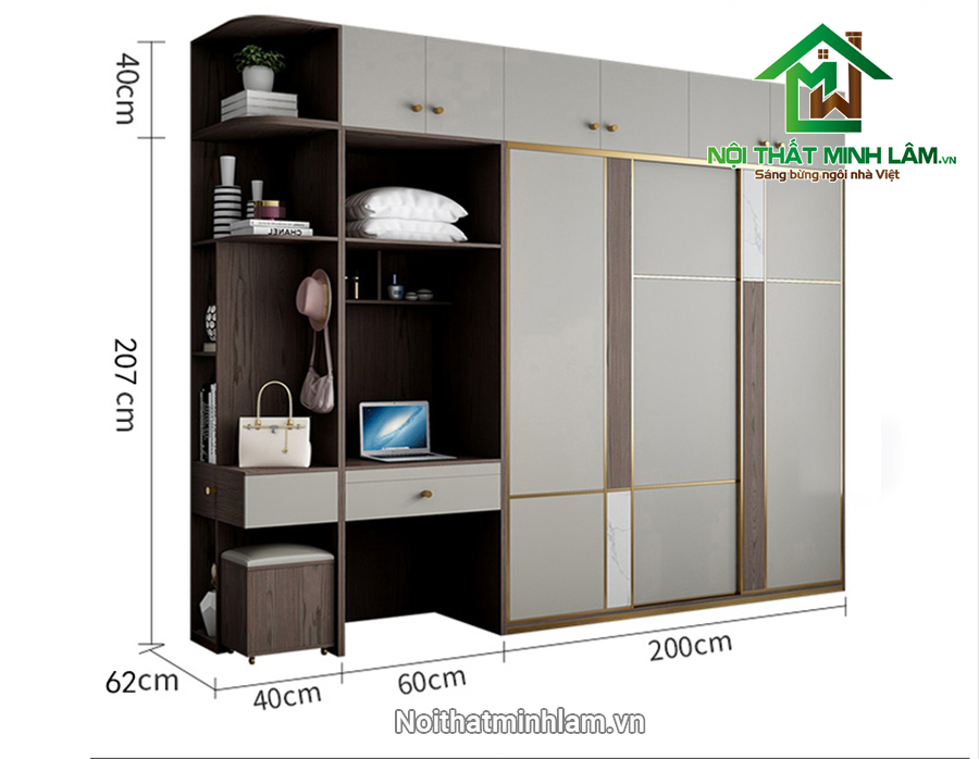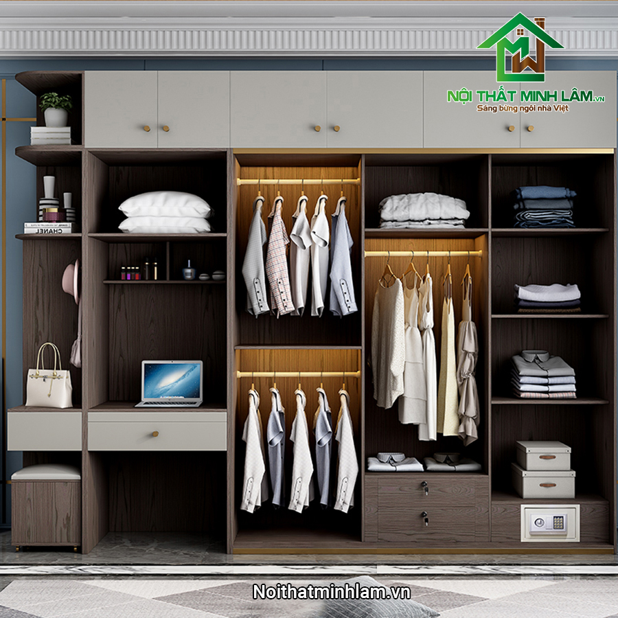 - Không gian tủ: Nhiều ngăn giúp bạn dễ dàng bài trí quần áo, chăn ga một cách khoa học, ngăn nắp.