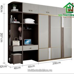 - Tủ 4 cánh kèm giá để đồ: 2044 x 550 x 2400mm