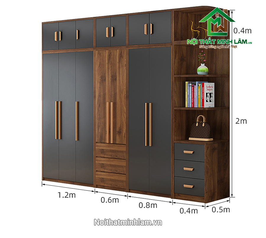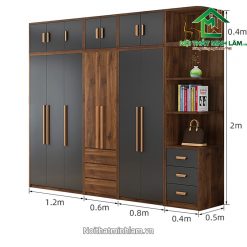 - Tủ 4 cánh kèm giá để đồ: 2043 x 600 x 2500mm