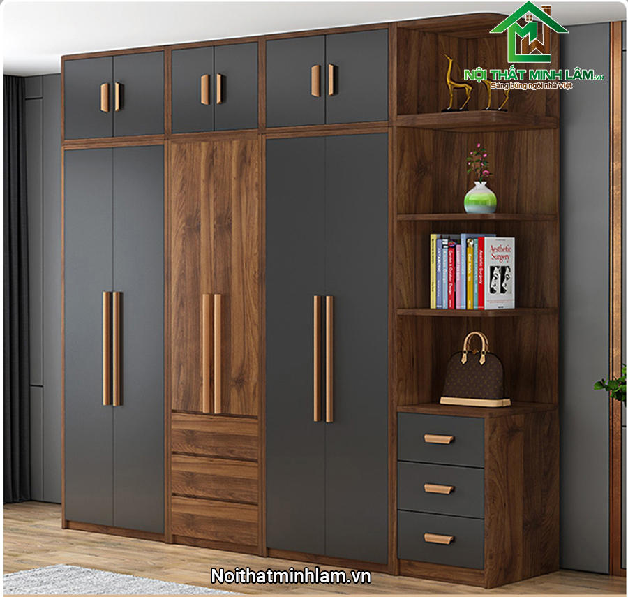 - Về thiết kế, kiểu dáng, mẫu mã: Thiết kế mẫu mã hiện đại, đa năng, vừa là tủ đựng quần áo gia đình vừa là tủ trang trí, tạo điểm nhấn cho không gian, đảm bảo nhu cầu chứa đồ dùng như quần áo, chăn ga cho gia đình bạn.